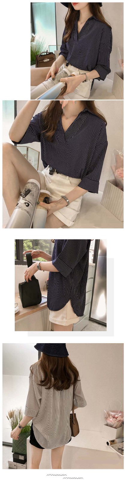 半小時前新品上市,勁爆特殺!全場大放送,單件低至NT$432,2020新款夏裝中長款韓版寬松顯瘦條紋襯衫女七分袖,廠家直銷,超值優惠,買到賺到!過後漲價! - 【超級氣質條紋襯衫】任選1件 僅需NT$899